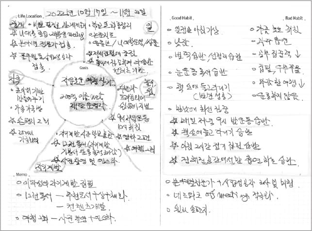 ① 일상 속 경험을 자유롭게 적는 만능 노트와