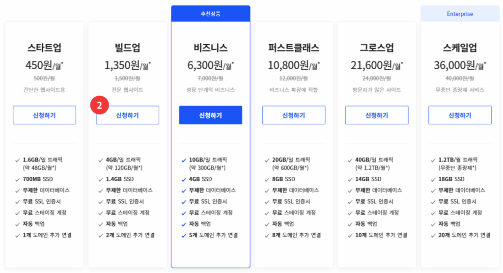 이제 카페24 서버에 새 둥지를 틀 차례다. 아래 링크를 통해 카페24 호스팅 서비스를 신청한다.