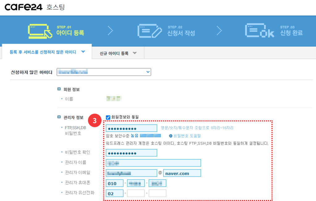 2) 카페24 뉴 매니지드 워드프레스 가입