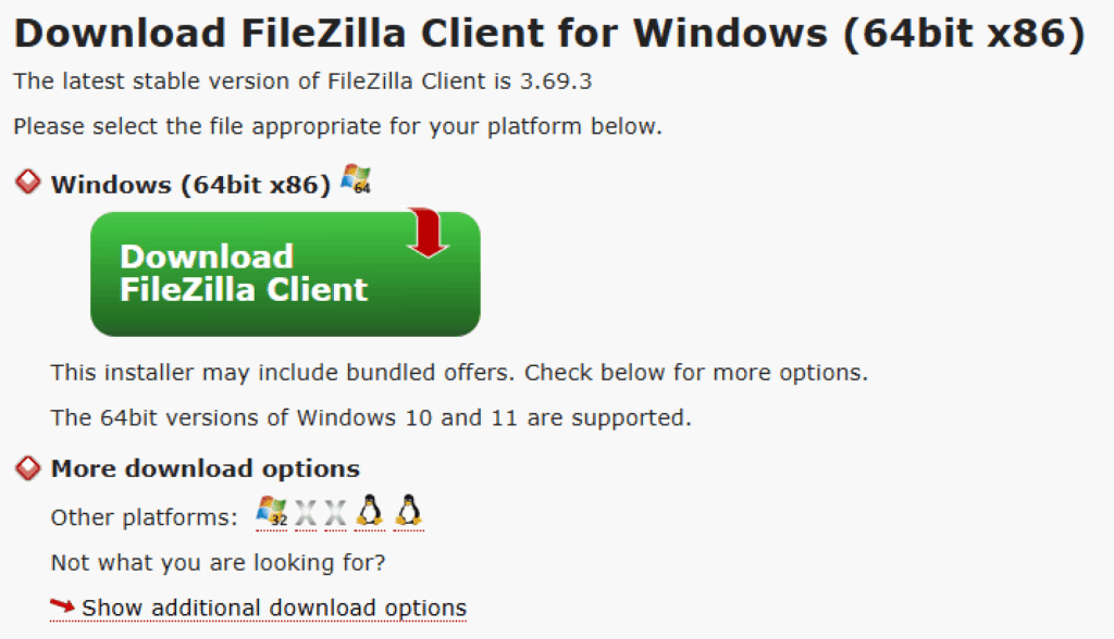 ① FileZilla (데이터 접속 프로그램) 클라이언트 프로그램 다운로드 / 설치 (다운로드 받으러 가기)