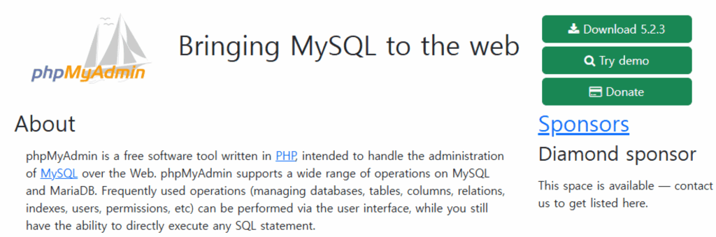 ② PHPmyadmin (DB 접속 프로그램) 다운로드 (다운로드 받으러 가기)