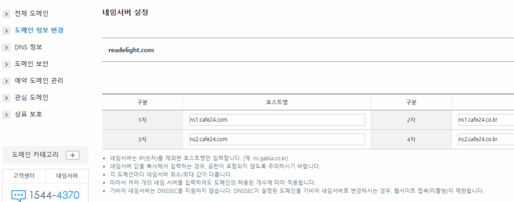 네임서버 정보도 카페24 것으로 변경해 준다.