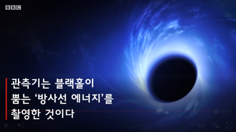 [2] BBC NEWS 코리아, 블랙홀 최초 사진… ‘괴물급이다’ 영상 중 일부 화면 캡쳐